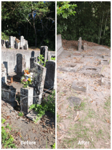 駐車場から15分ほど歩いた場所に 古いお墓が28本建っています